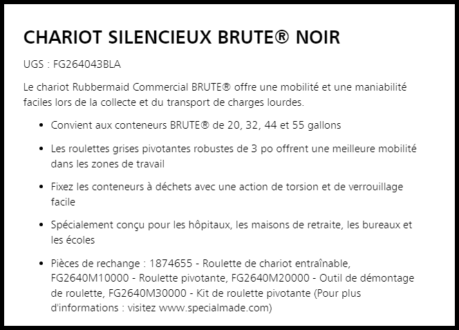 - Convient aux conteneurs BRUTE® de 20, 32, 44 et 55 gallons