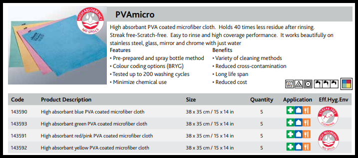 Vileda Professional utilise les dernières technologies pour inventer et produire des solutions de nettoyage plus efficaces afin de réduire votre travail. Notre chiffon en microfibre le plus performant PVAmicro permet d'obtenir des résultats de nettoyage sans traces en une seule étape grâce à une technologie de revêtement unique. Le chiffon breveté PVAmicro absorbe une grande quantité d'eau ainsi que d'autres liquides et les libère de manière homogène.